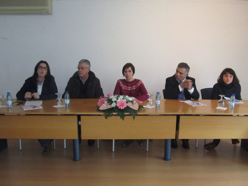 A mesa de apresentação. Comigo ali no meio, bem atenta. Porto-me bem =) (quando quero;))