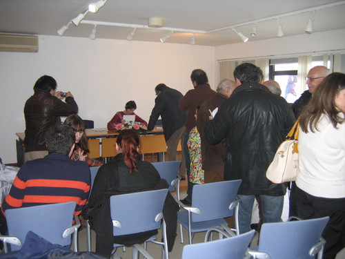 No átrio, da Biblioteca Municipal que tão bem nos recebeu, e já com alguma gente. A boa gente Transmontana que resistiu ao frio para apoiar o livro dos mais pequenos e, claro, dos grandes também =)