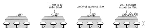 Desistir de ler o Jornal é outra hipótese. Mas já anda tanta gente de olhos vendados que não queria engrossar os números. Portanto, o que me resta? Pedir que no próximo orçamento não me cortem mais do que já me cortaram, mas temo que nem a pedir com jeitinho eu vou lá.